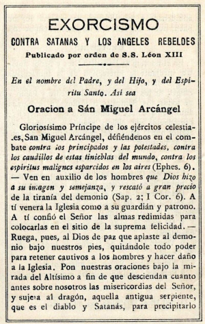 Zapewne niejeden „twardo stąpający po ziemi” teolog wzdrygnie się na myśl o tej wizji, ale papież Leon XIII ujrzawszy tę scenę, był tak wstrząśnięty, że natychmiast ułożył specjalną modlitwę do św. Michała Archanioła i poprosił o jej odmawianie po każdej Mszy świętej. Oto jej treść: